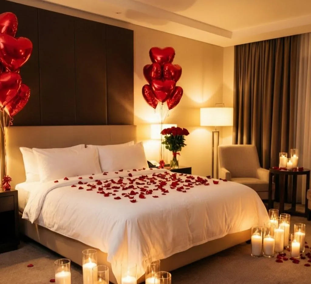Transform your bedroom into a romantic oasis with our Petal Paradise package, designed to create an unforgettable surprise for that special someone. Our expert decorators will craft a luxurious and intimate atmosphere, perfect for rekindling love and connection.